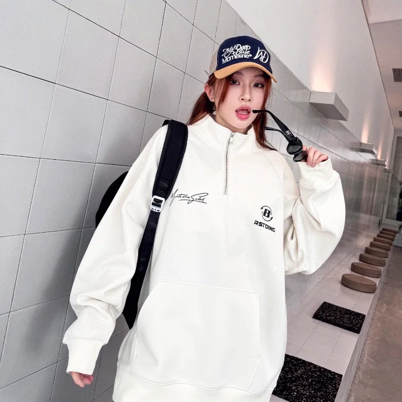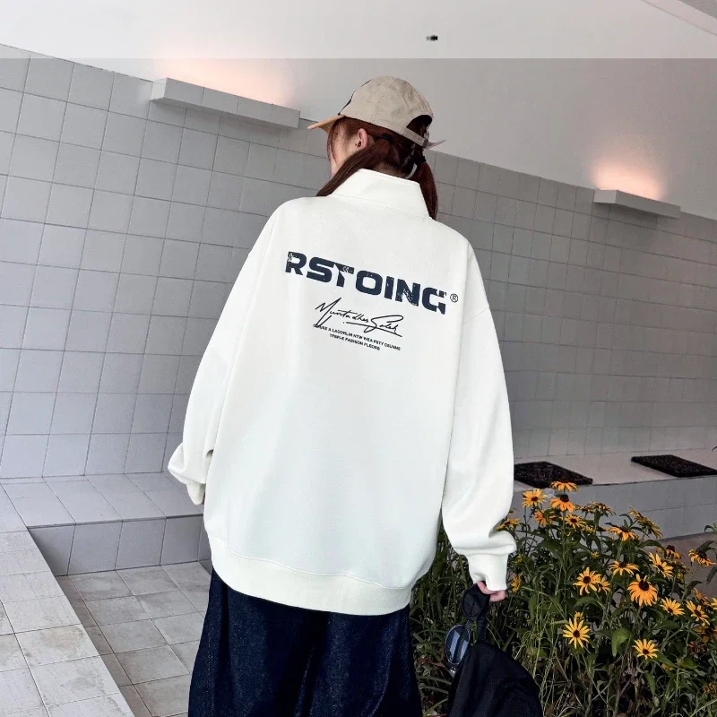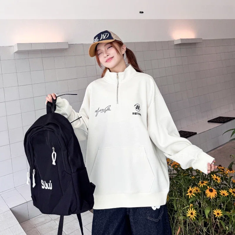 New Spring Girl's Stand Solid Printed Knitted Breathable Garment Dyed Casual Regular Sleeve Sporty Comfortable Loose Fit